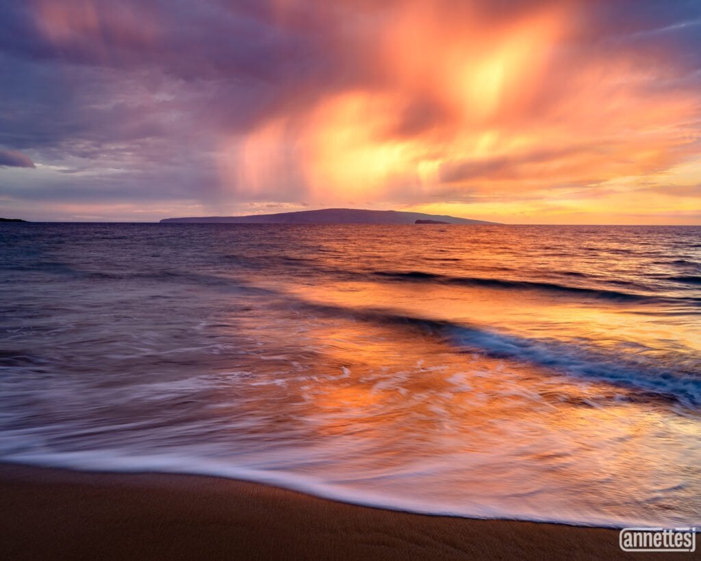 This collection features sunsets that glow in gold, rose, and deep orange, with soft waves rolling onto the shore and volcanic rock anchoring the scene. Some moments are peaceful and still, while others are full of movement as the ocean reflects the sky in shifting color. From wide open beaches to intimate shoreline details, each image reflects a different side of Hawaii’s natural beauty.